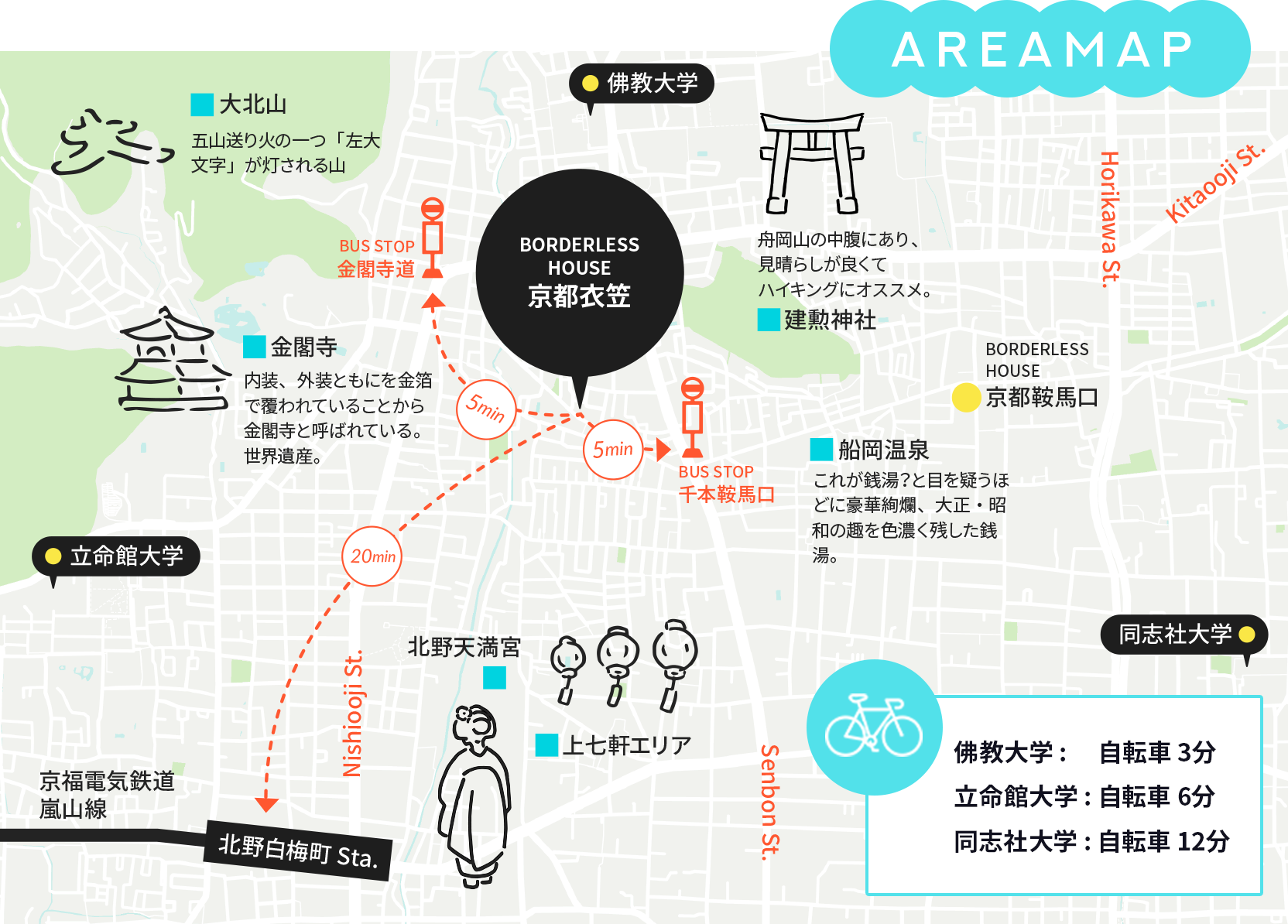 ボーダレスハウス京都衣笠は、京都の学生街に位置するシェアハウス。