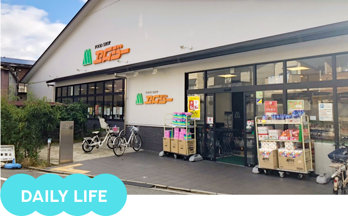 近くを通る西大路通りには、コンビニ、ドラッグストア、スーパーマーケット(コープ)などもあり、日常生活に便利!