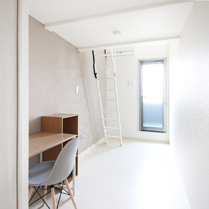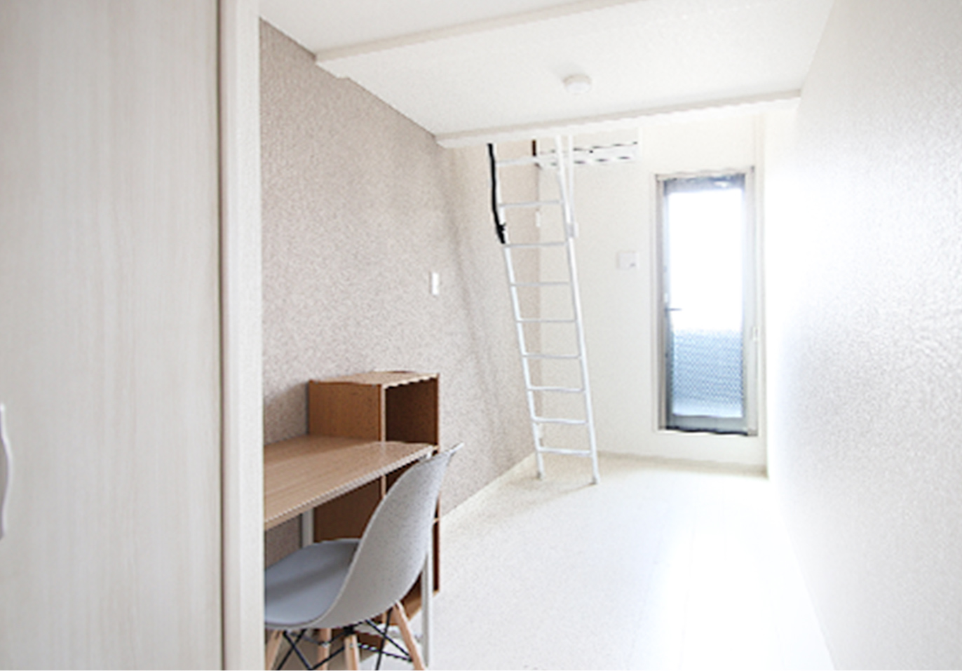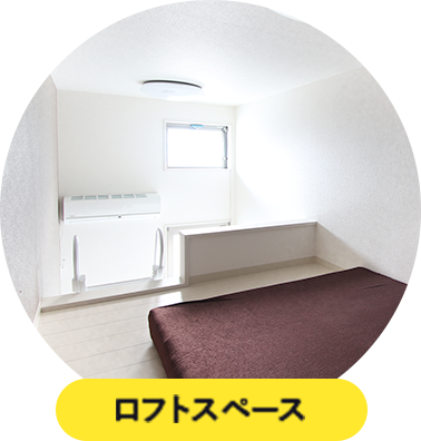 12㎡を超える広い個室にはロフトスペースがあり、シェアハウスでは珍しいセミダブルベッドが!天井も高く、開放感があります。