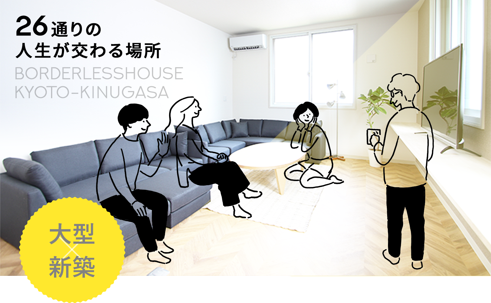 ボーダレスハウス京都衣笠の特徴は、なんといってもその規模の大きさ!総勢26名が暮らせる大きなシェアハウスで、たくさんの外国人の方と国際交流を満喫できます。