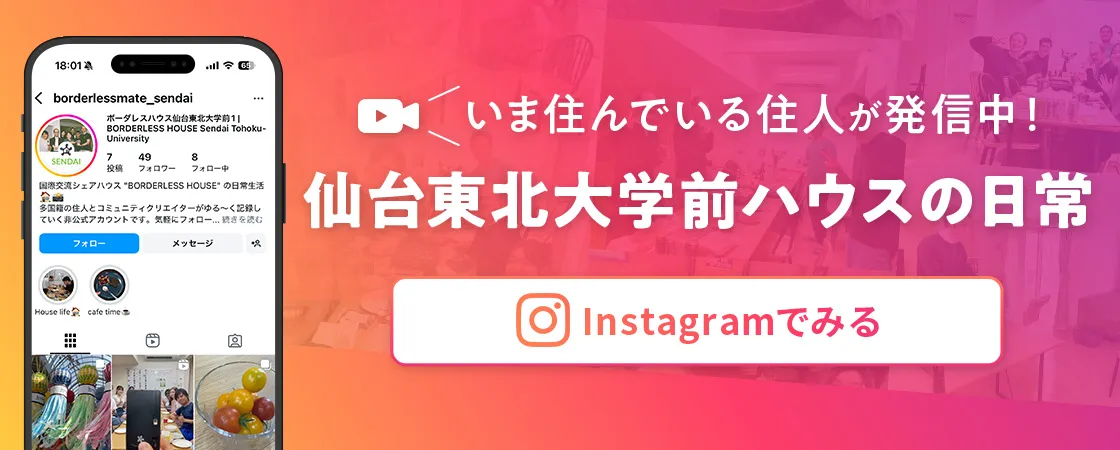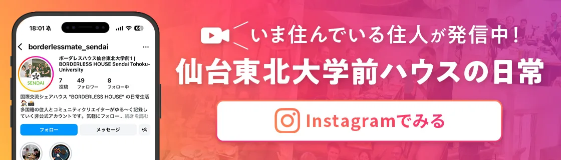 仙台東北大前1ハウスは、仙台市内でグローバルな出会いや世界を広げる体験を求めている学生や社会人にぴったりです。