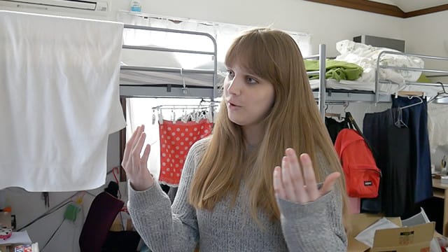 8時に起き、9時半から13時まで授業、バイトのある日はそのあと22時まで働いて、23時頃帰ります。帰ると大抵みなリビングにいます。語学学校に通って気がついたんですが、漢字は全然ダメなのに話すことはできるのはボーダレスハウスに住んでいるおかげかなって思います。自分で話したいとか、これだけは伝えたいということがいっぱいあるので日本語を頑張っています。ここでできた日本人の友だちと、最初は英語とのミックスで、覚えた言葉はどんどん日本語で話すようにしたのがすごく良かったな。たまに広島弁とかでも話します!日本語ってこんなにいっぱい言葉があるんだと思いました。