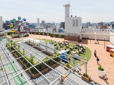 屋上は、夏にはビアガーデンをやっています。都内唯一屋上にある観覧車は有名で、蒲田のモチーフとなっています。