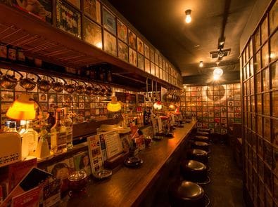 代々木駅から徒歩1分の代々木ビレッジ(写真)こちらのお店は、昭和に包まれることができる居酒屋!まず、壁にはレコードがびっしりと貼られており、かかっている音楽も70年代、80年代のものです。なつかしの駄菓子もメニューの中にあるそうです。